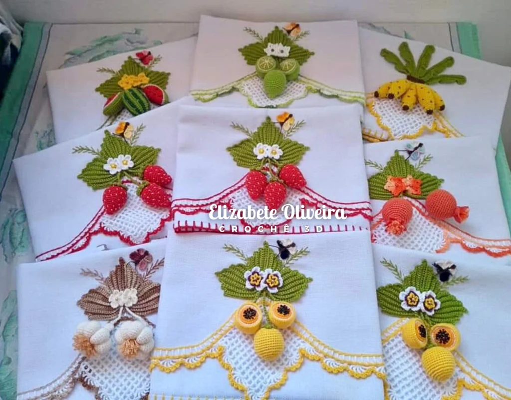 O Crochê 3D vem ganhando espaço entre os artesanatos e enchendo os olhos dos amantes dessa arte. Além visivelmente lindos, são palpáveis, apresentam as formas das frutas ou legumes em miniaturas.