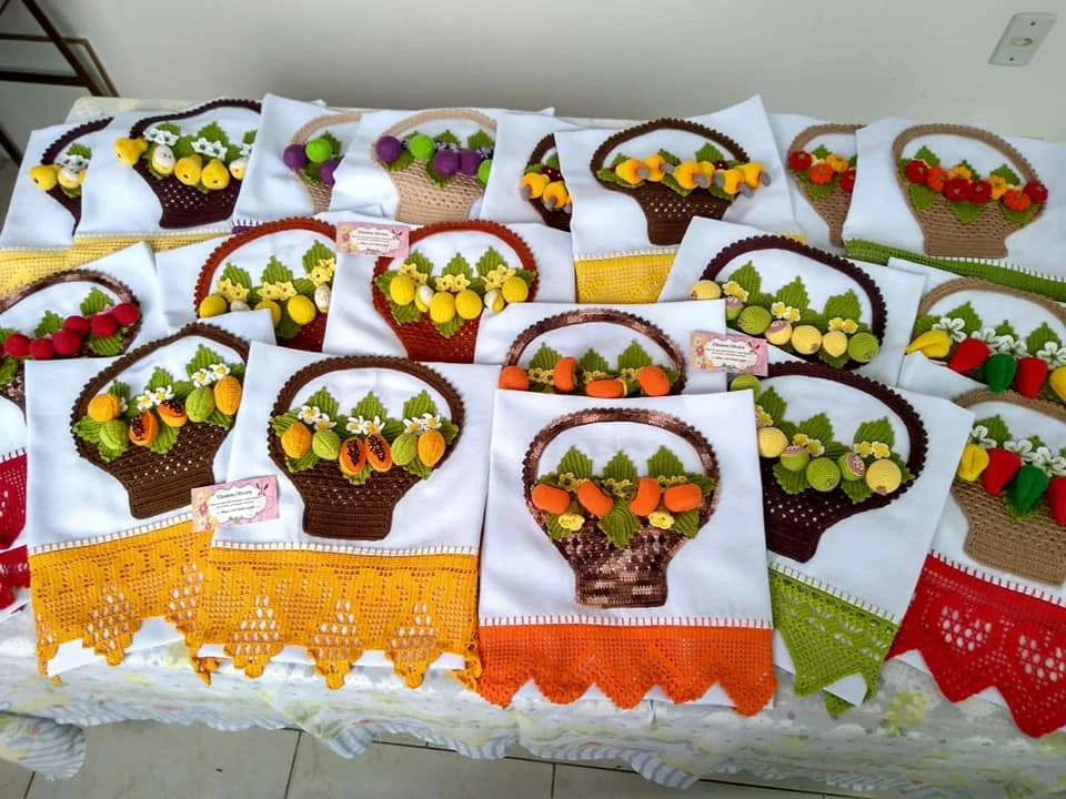 São quase 60 vídeo aulas completas com todo o passo a passo de como fazer cada uma das lindas frutinhas, das folhas e das flores. Para você fazer várias peças de decoração e lindos panos de pratos decorados.